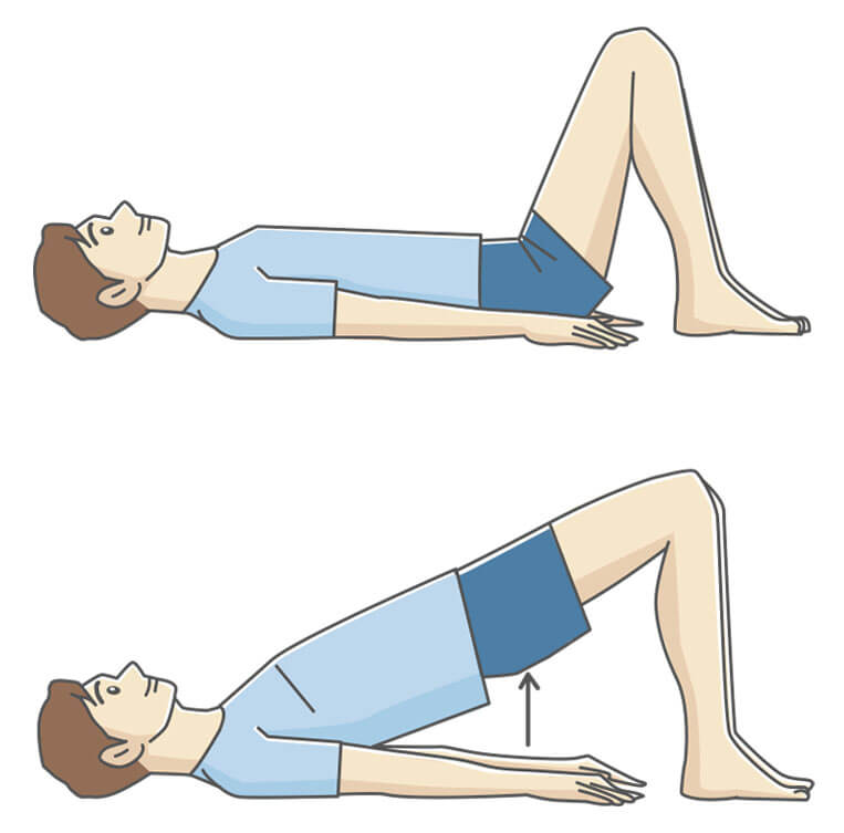・仰向けに寝て、足を肩幅に開き、両膝を軽く曲げて立つ